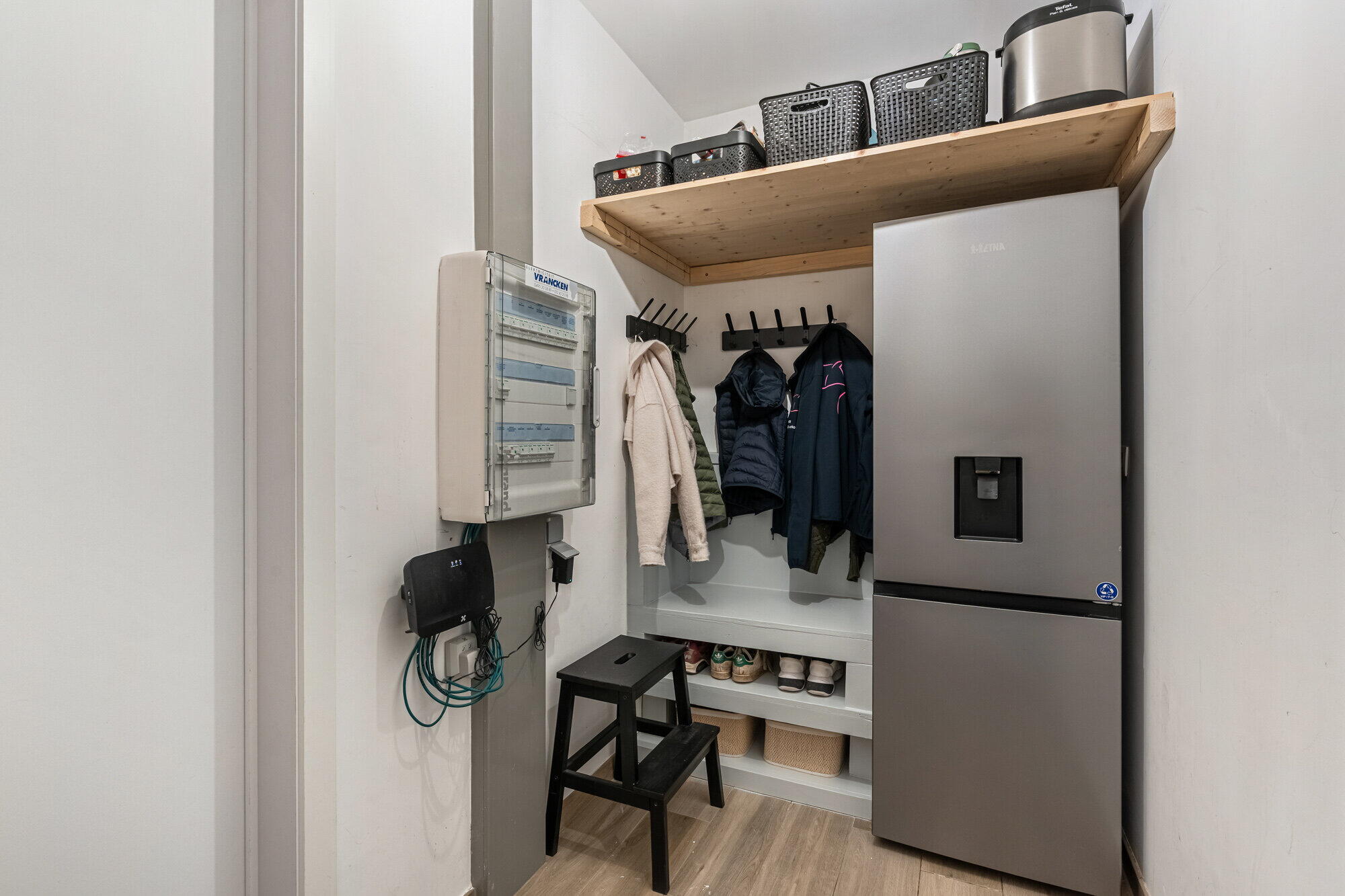 - De praktische berging heeft een wasmachineaansluiting en biedt toegang tot de garage in de kelderverdieping;