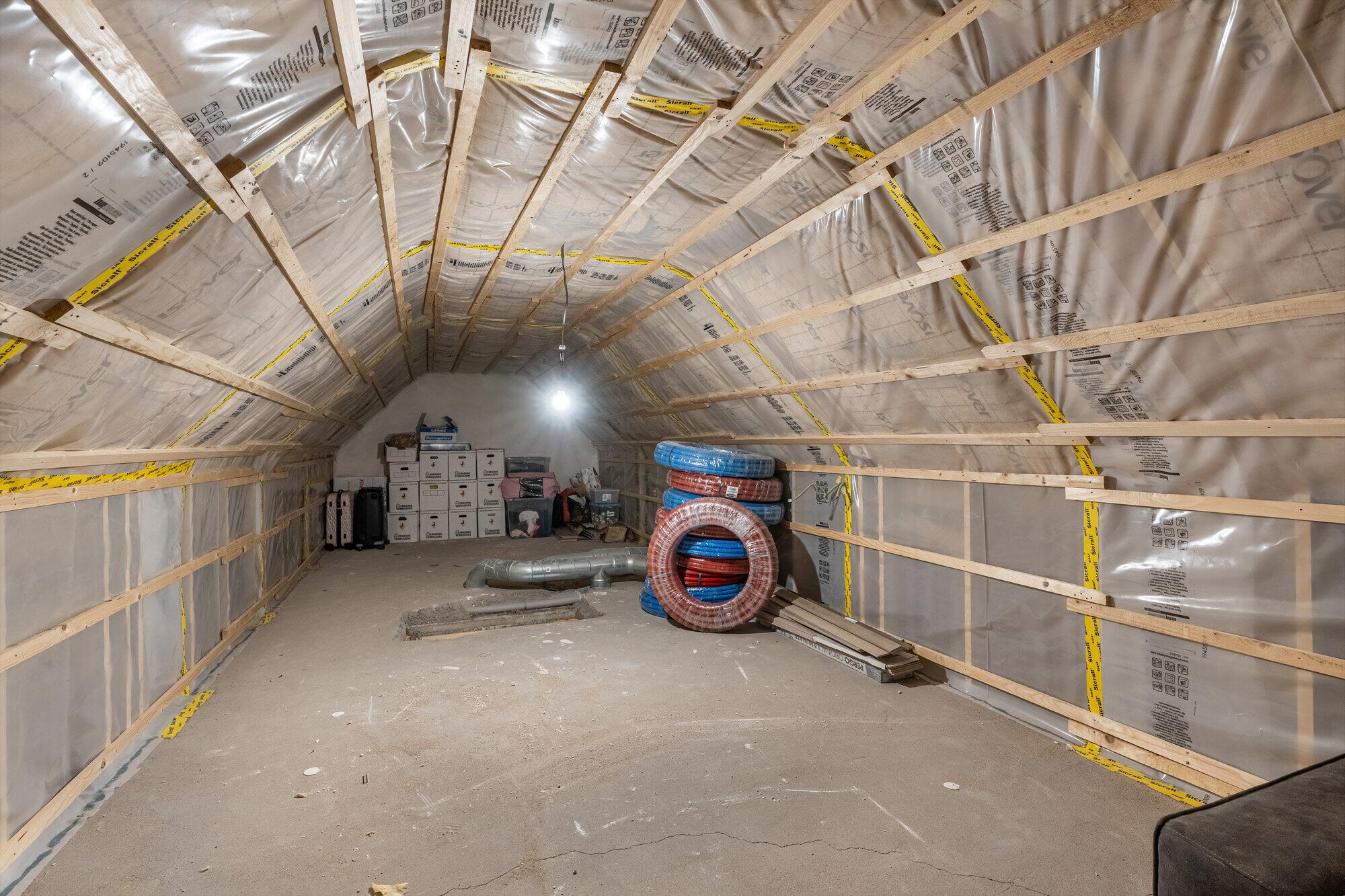 - Ruime zolderverdieping, wordt momenteel gebruikt als extra opbergruimte. Kan mits het plaatsen van een vaste trap ook nog dienen als extra slaapkamer.