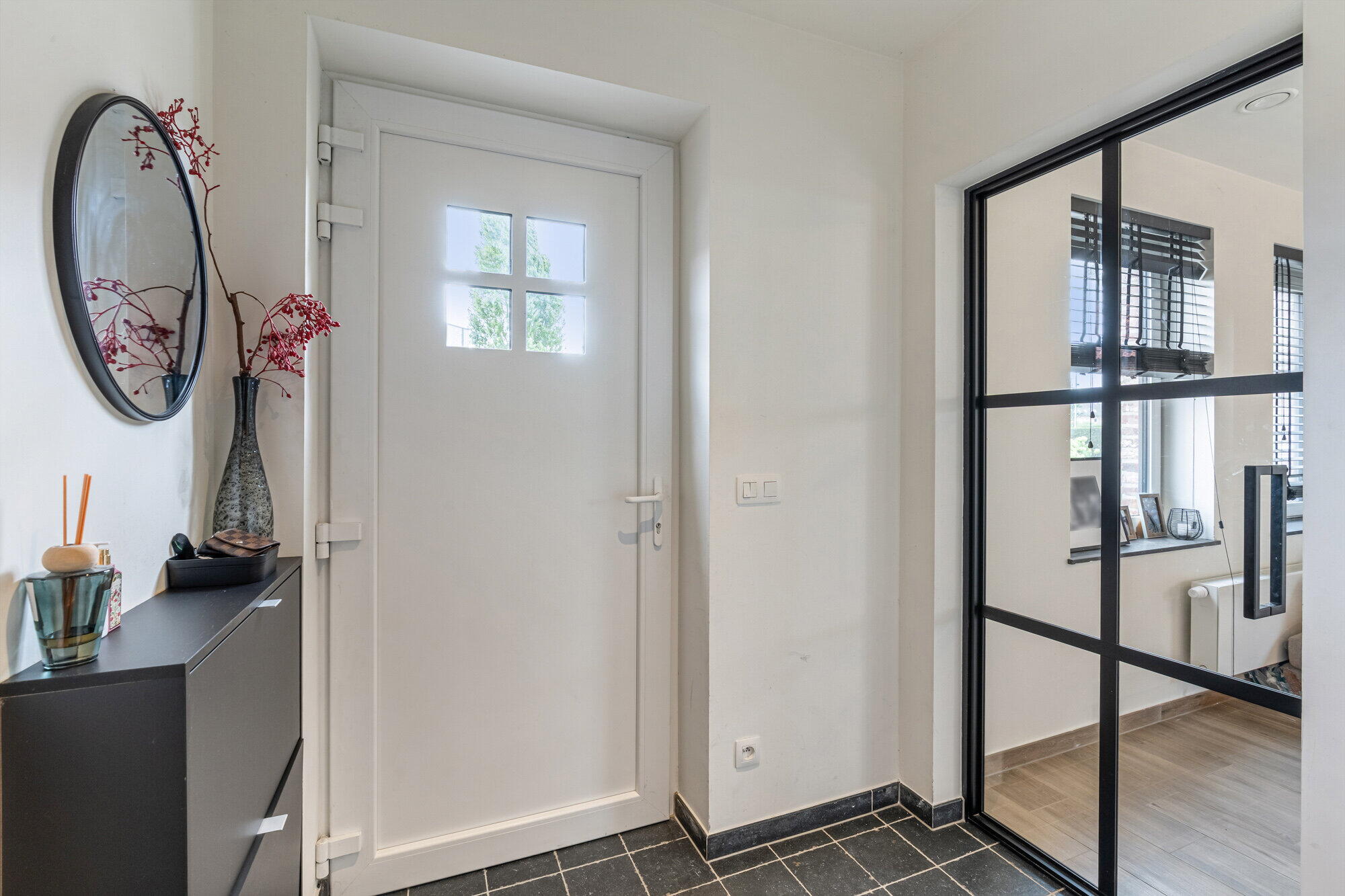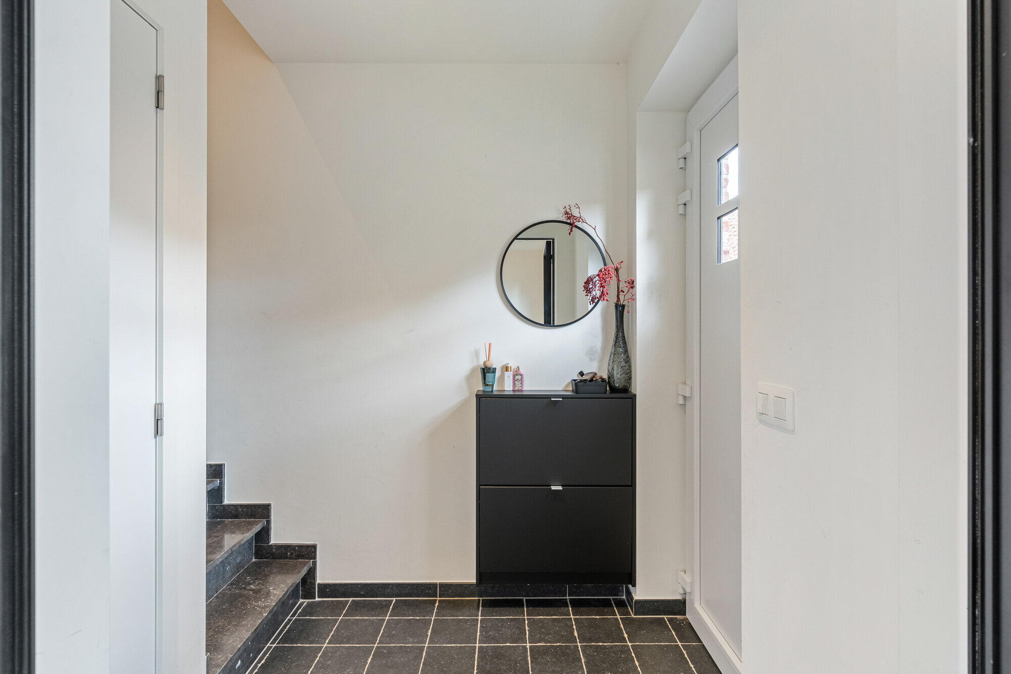 - De inkomhal met natuurstenen vloer beschikt over een gastentoilet en fonteintje;